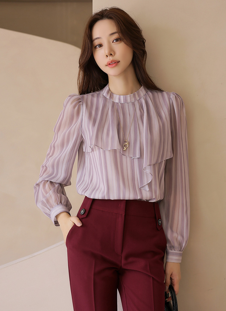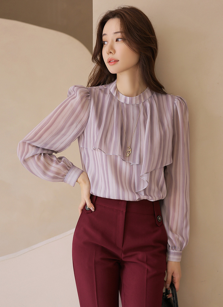 우아한 컬러 포인트를 준 러플 레이어드 블라우스에요 :)