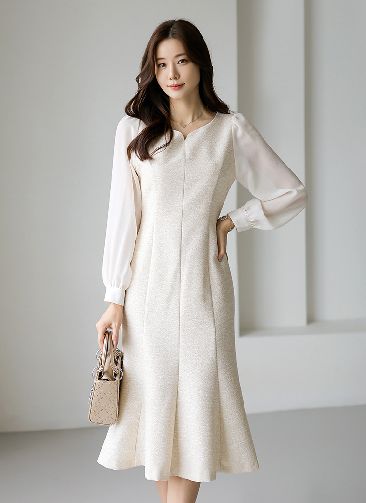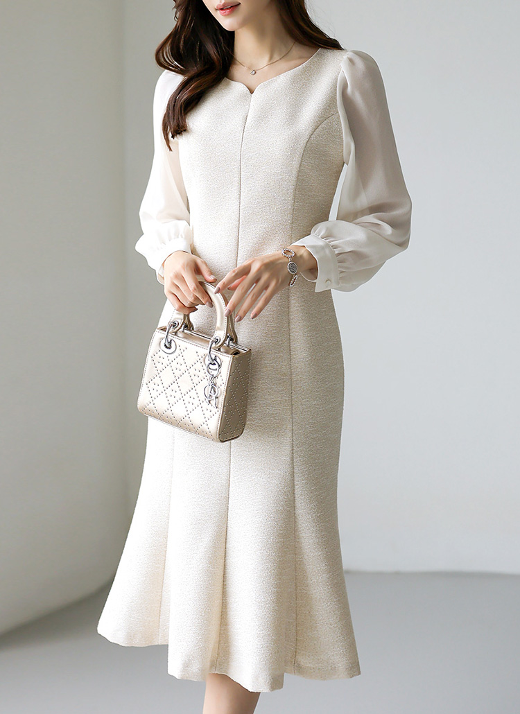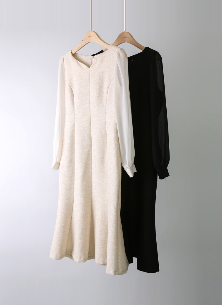 곡선미를 아름답게 연출하는 머메이드 라인과 사이드 절개 디테일로