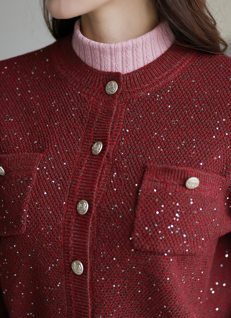 볼드한 실버버튼이 고급스럽게 돋보이는 보카시 니트 가디건이에요 :)
