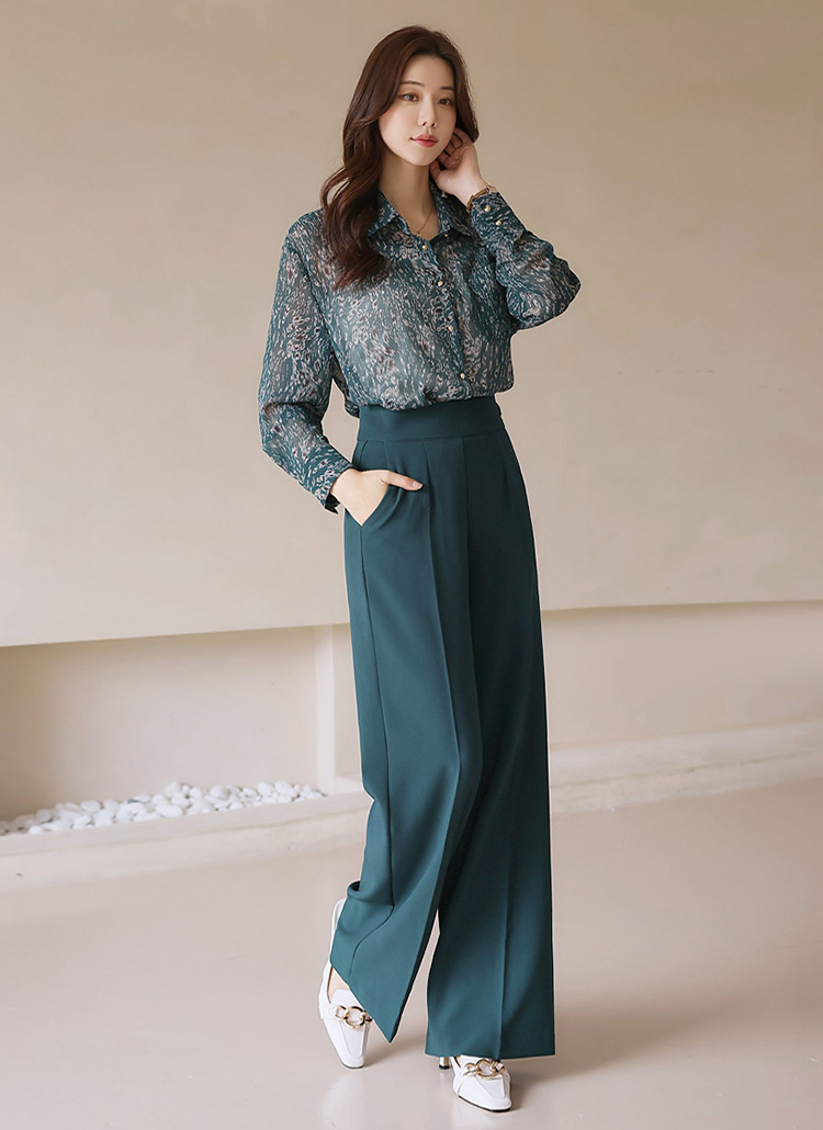 실키한 텍스처의 롱 와이드 팬츠로