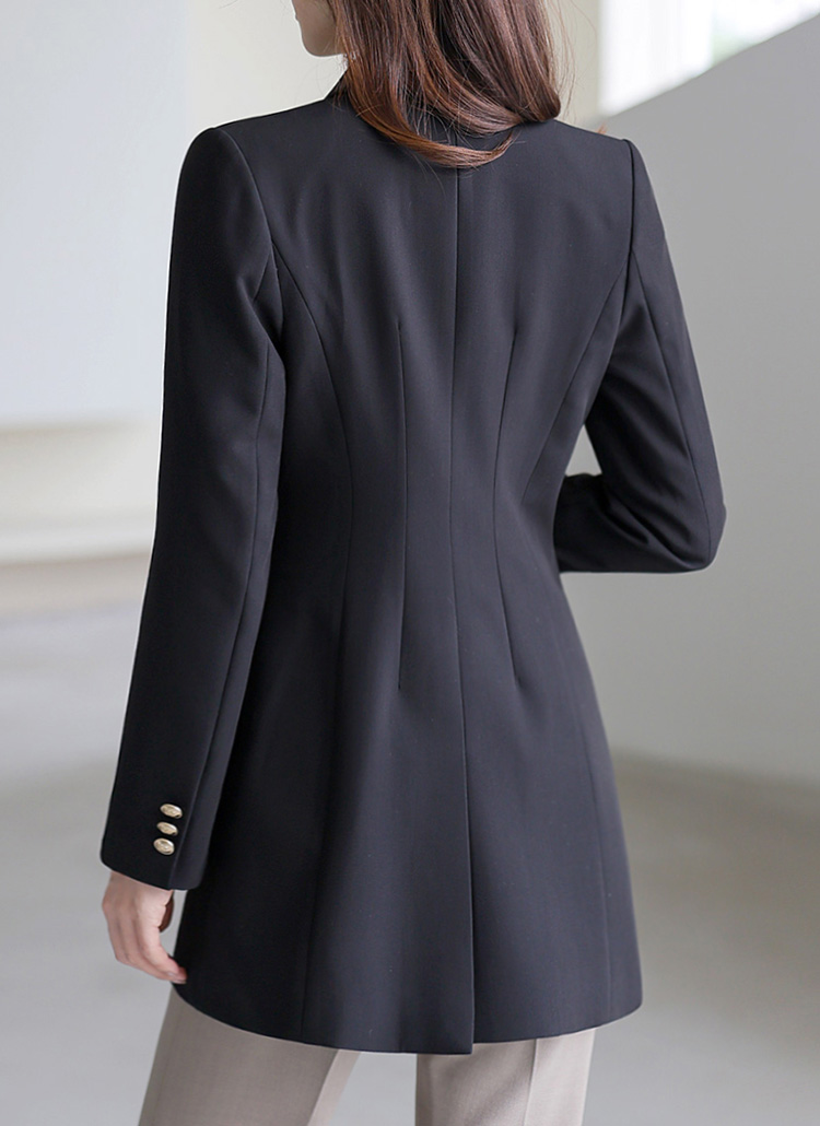Gold Button Mid-Thigh Tailored Jacket w/ Faux Flap Pockets