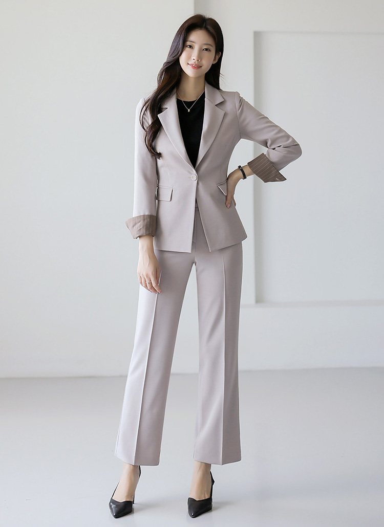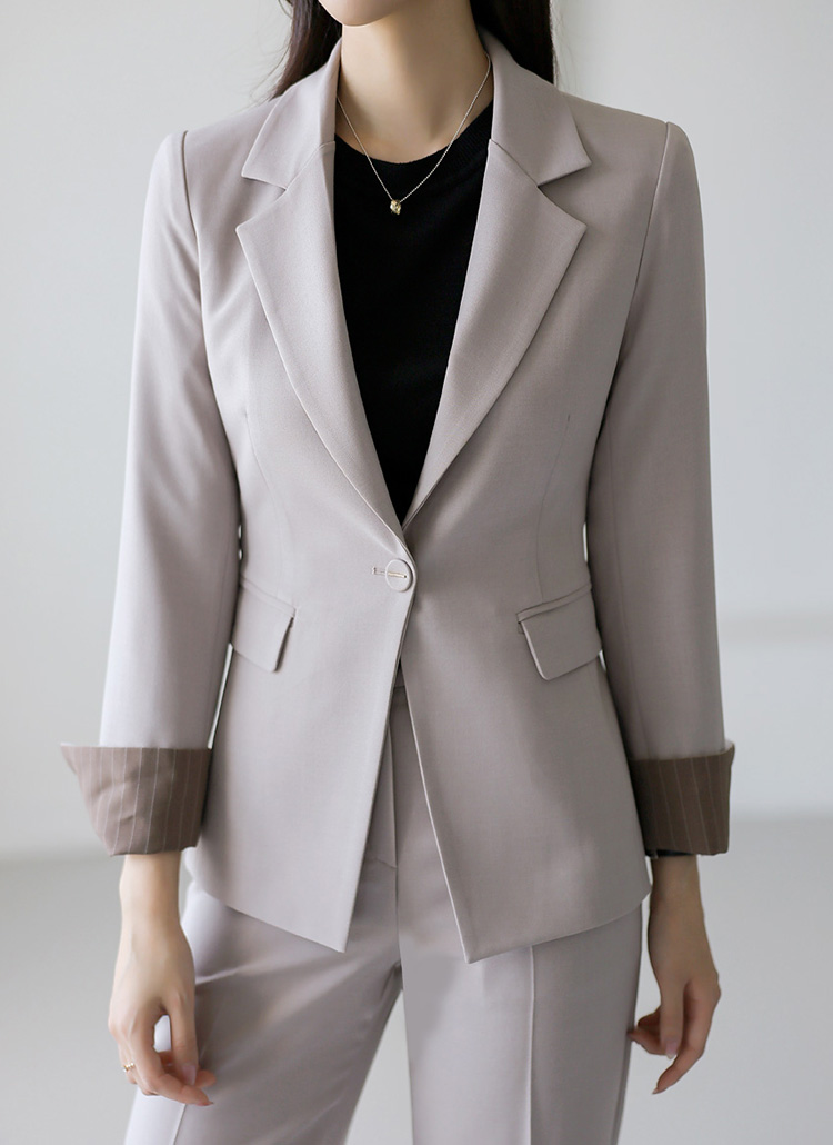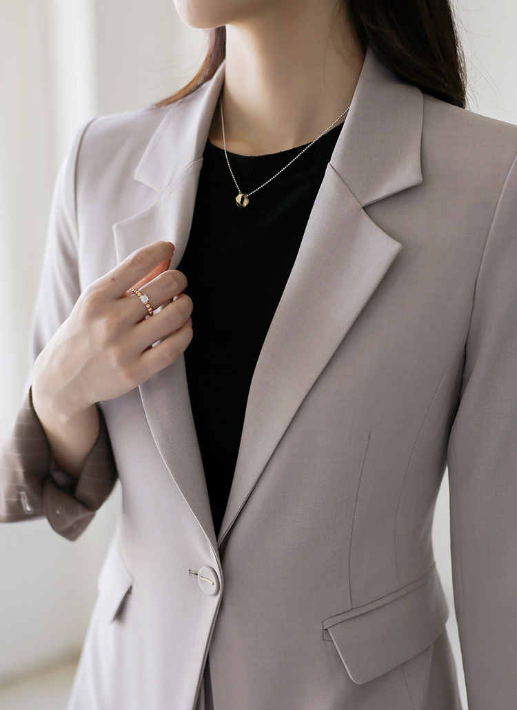 슬림한 페미닌 라인에 원버튼으로 핏을 잡아주어