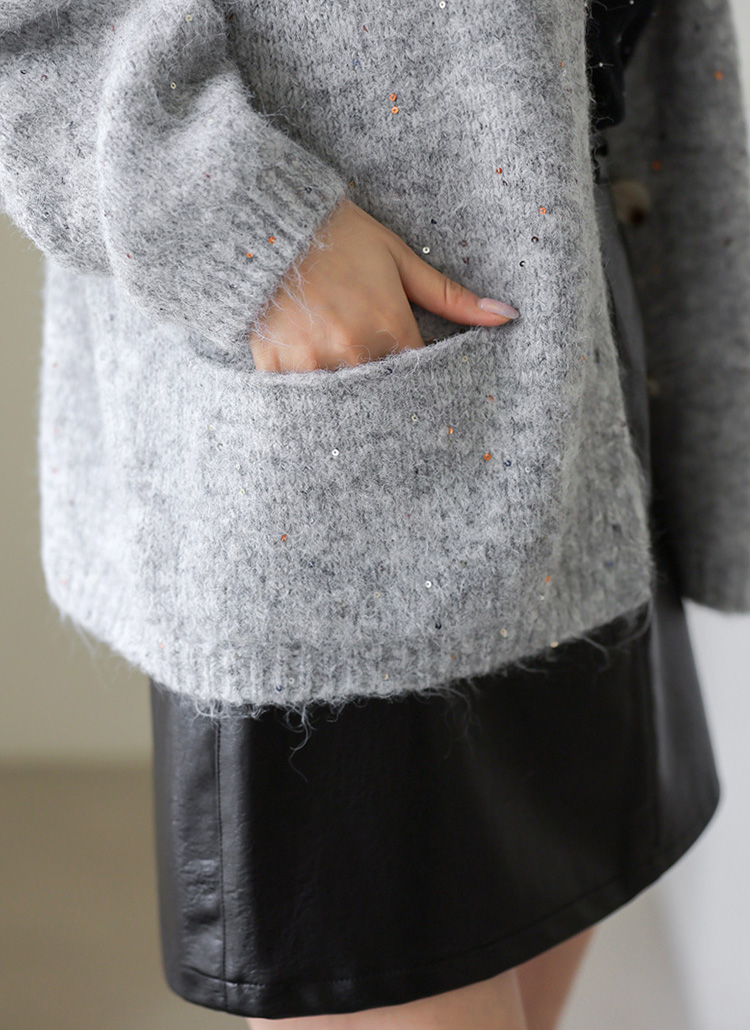 [The Onme] Sequined Fuzzy Relaxed Knit Cardigan