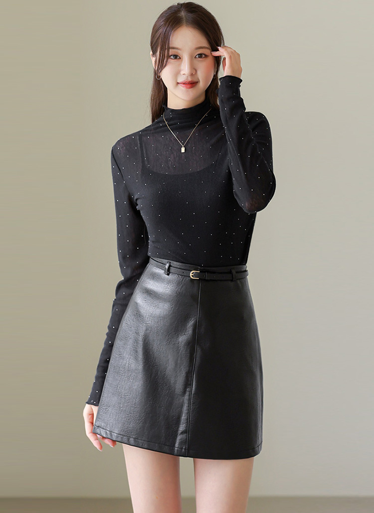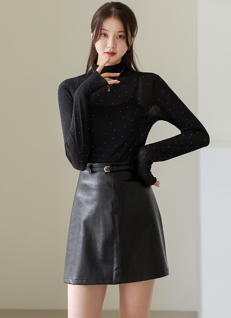멋스러운 무드를 연출해주는 벨트SET 심플 미니 레더 스커트에요 :)