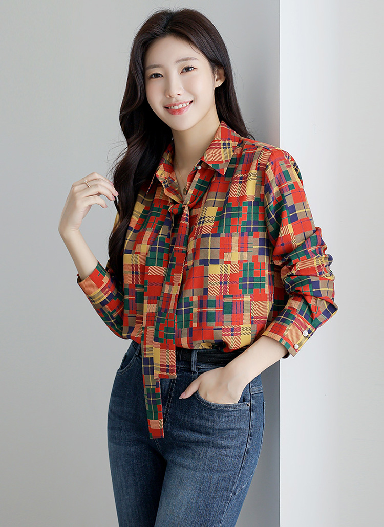 유니크한 매력이 느껴지는 타이SET 셔츠 블라우스에요 :)