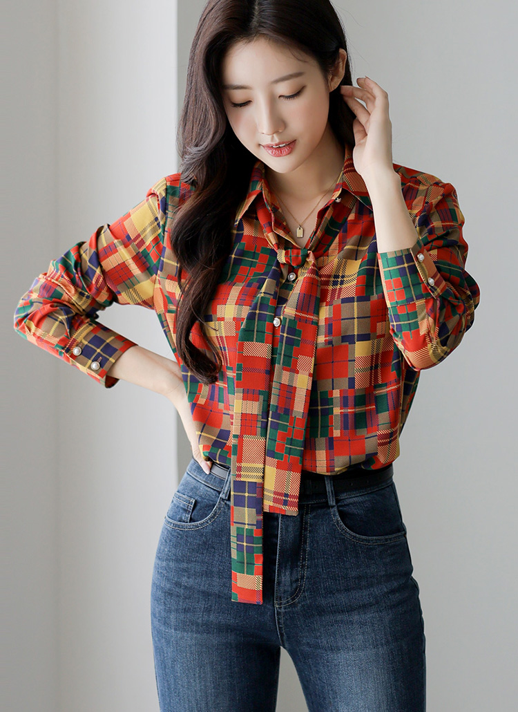 [LouisAngel] Multi-Color Check Shirt w/ Tie
