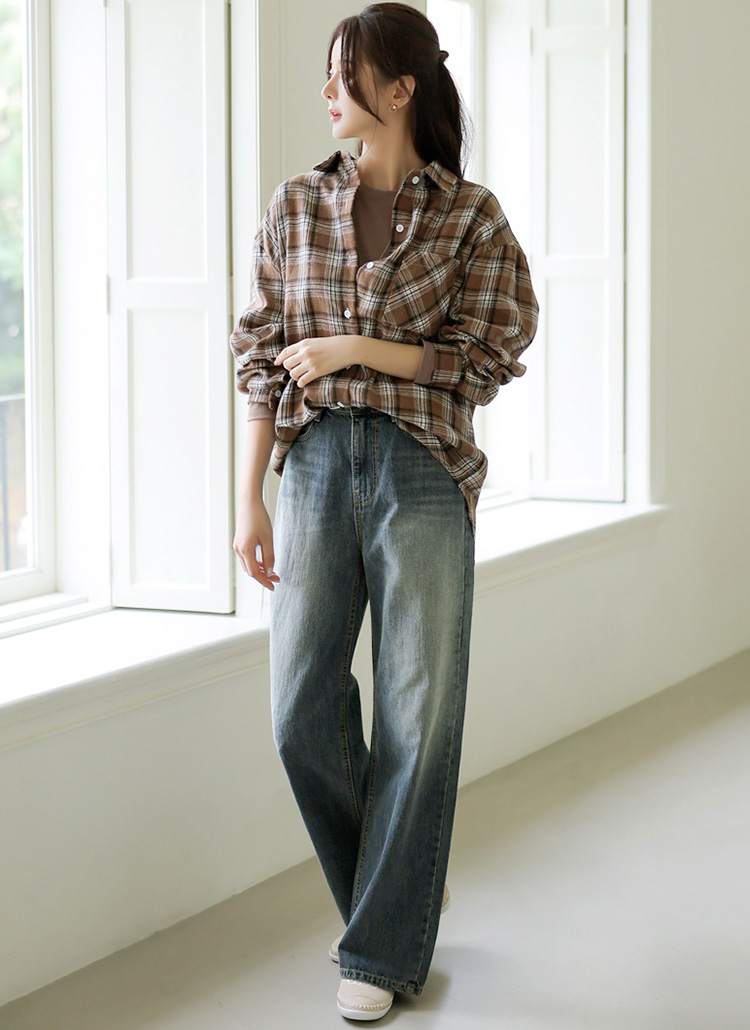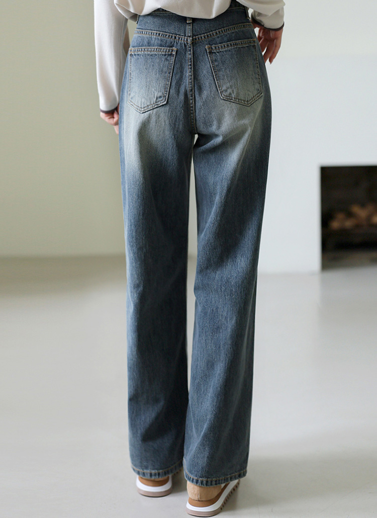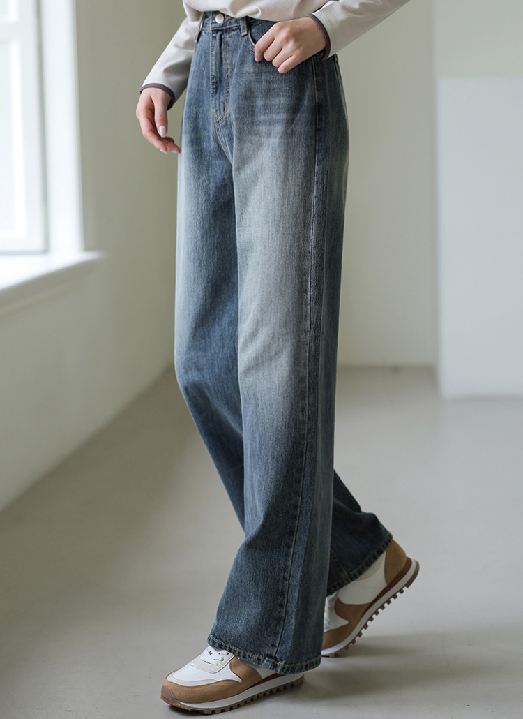 은은한 컬러톤의 워싱과 여유감있는 세미 와이드 핏으로
