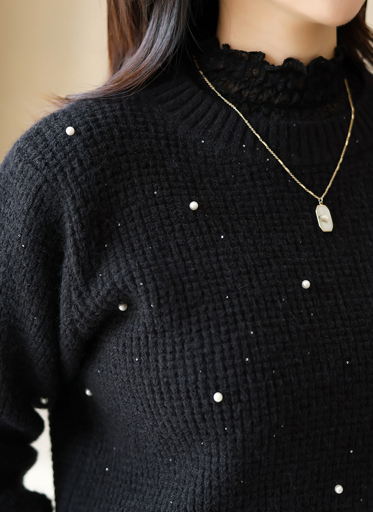 진주와 스팽글이 믹스된 디테일로 사랑스러운 무드를 연출하는 니트에요 :)