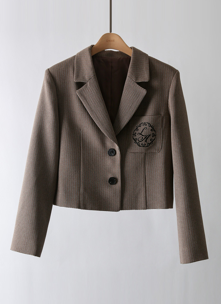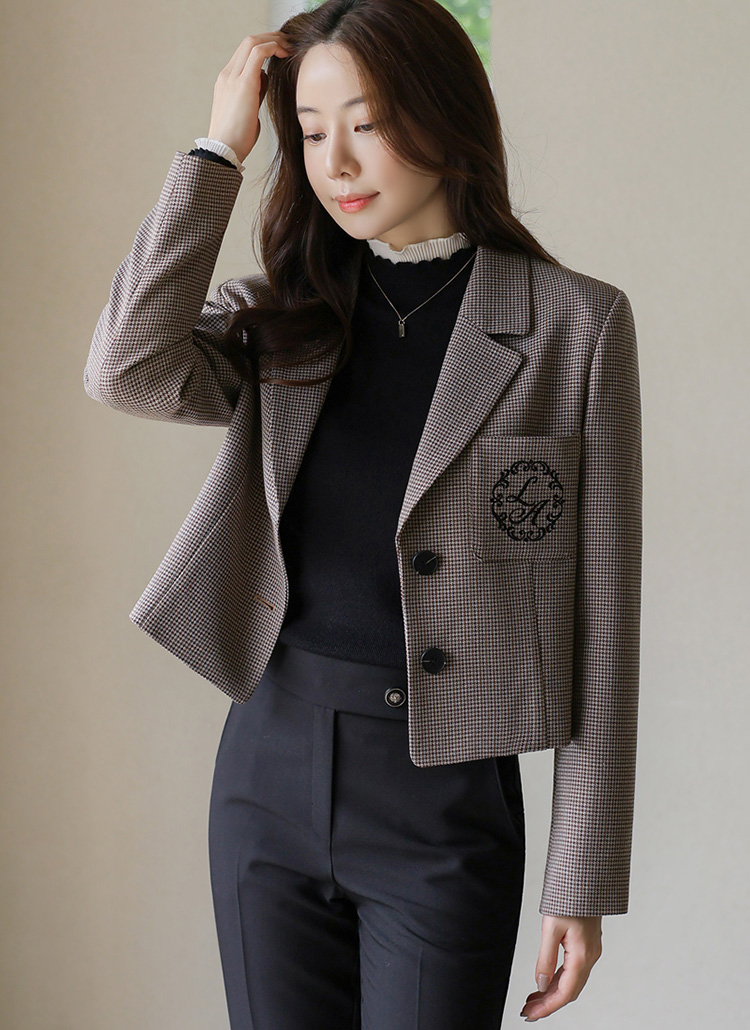 루이스엔젤 로고 자수가 포인트인 세미크롭 체크 자켓이에요 :)