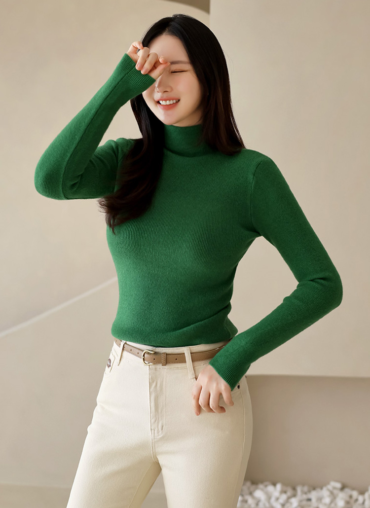 (10 Colors) Basic Ribbed Turtleneck Knit Top