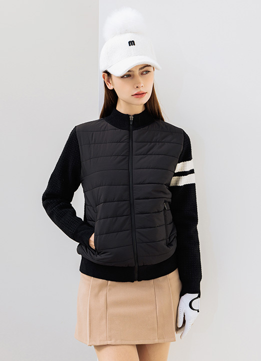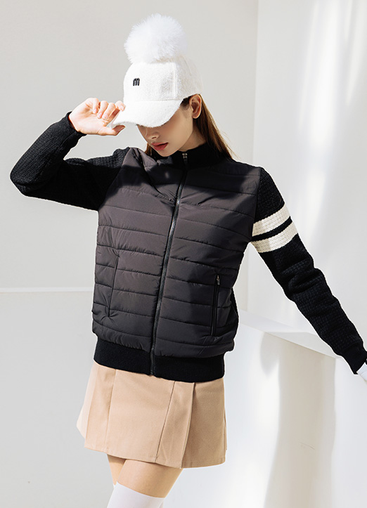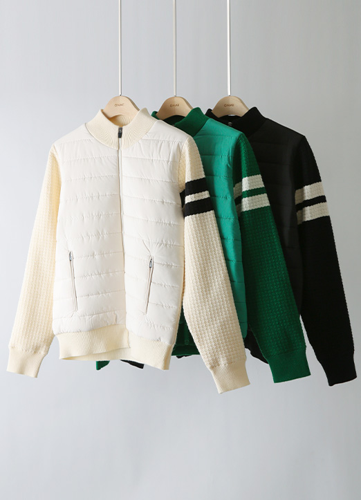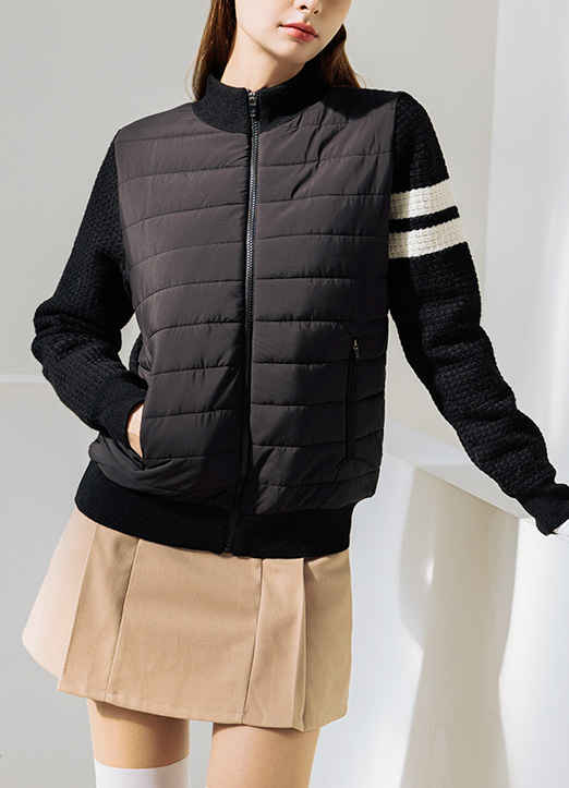 [QoG] Padded Front Zip-Up High Neck Knit Jacket