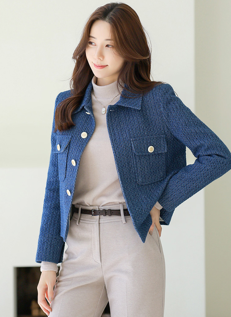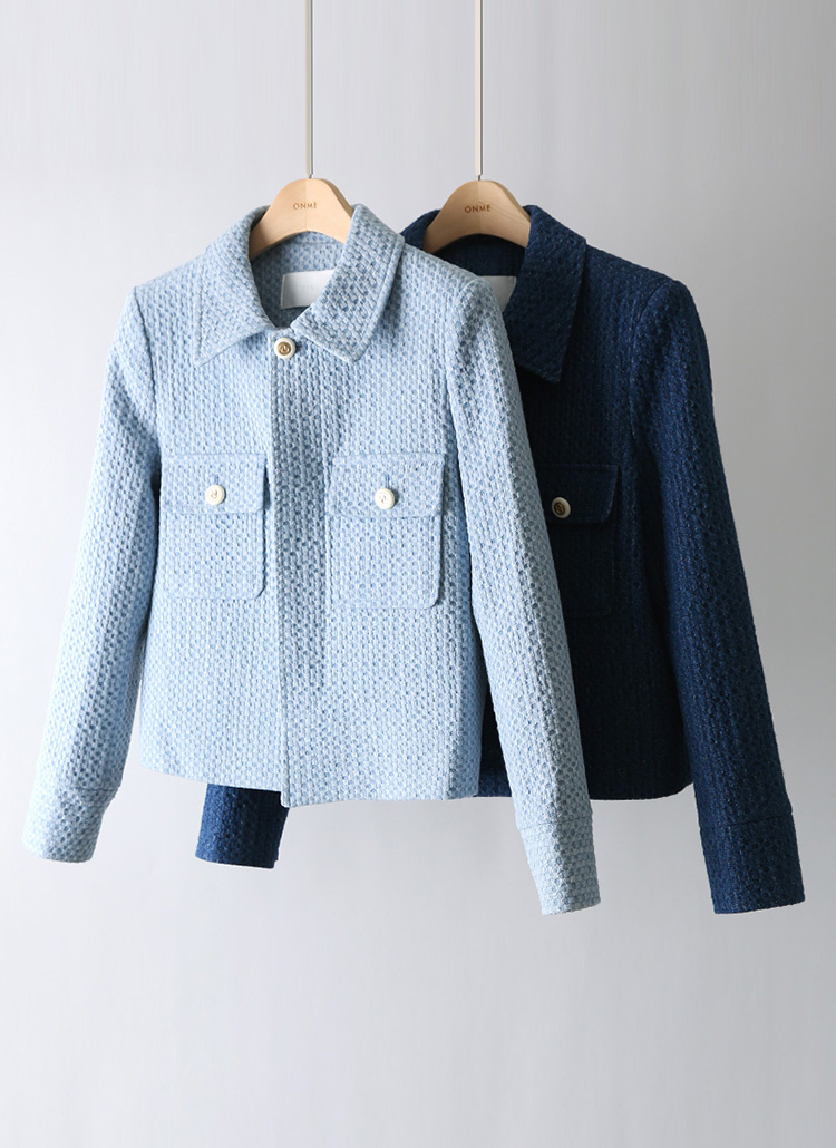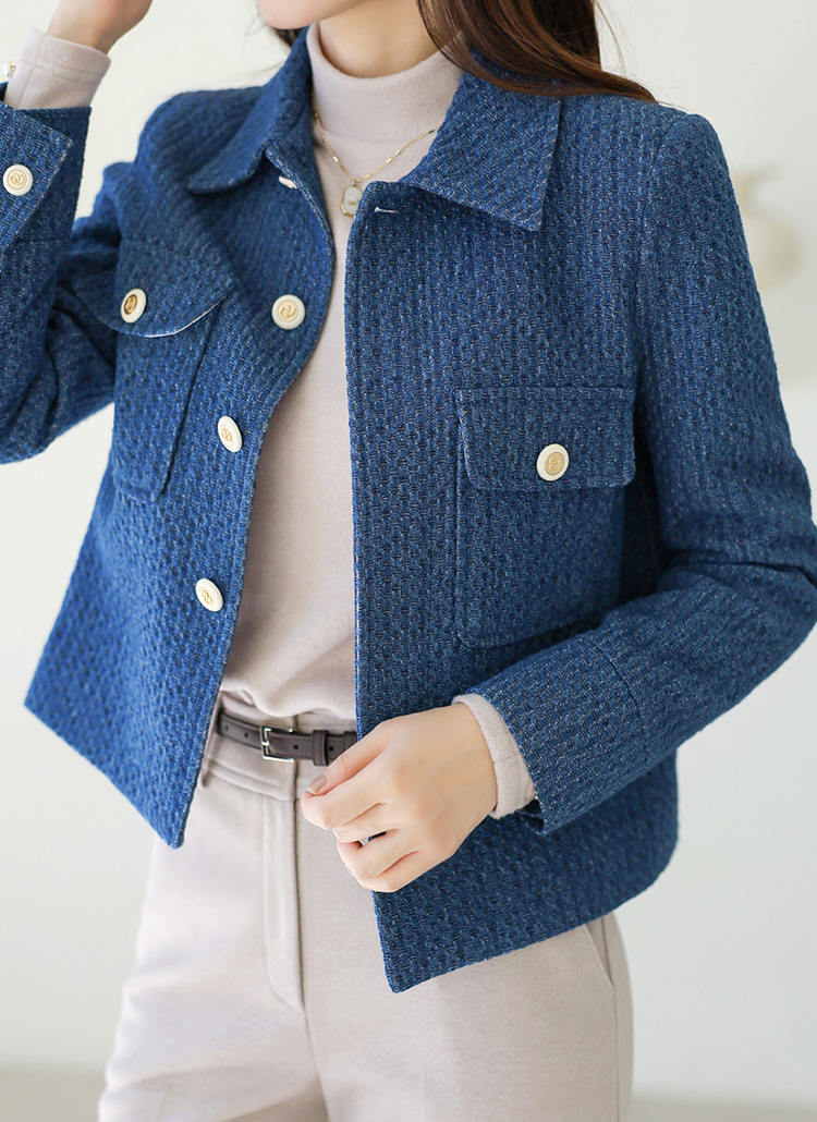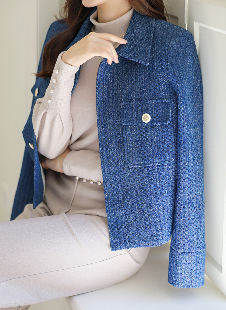 Collared Waffle Textured Jacket w/ Patch Pockets