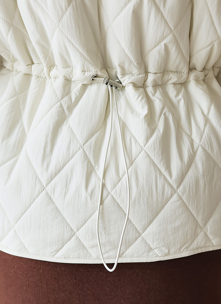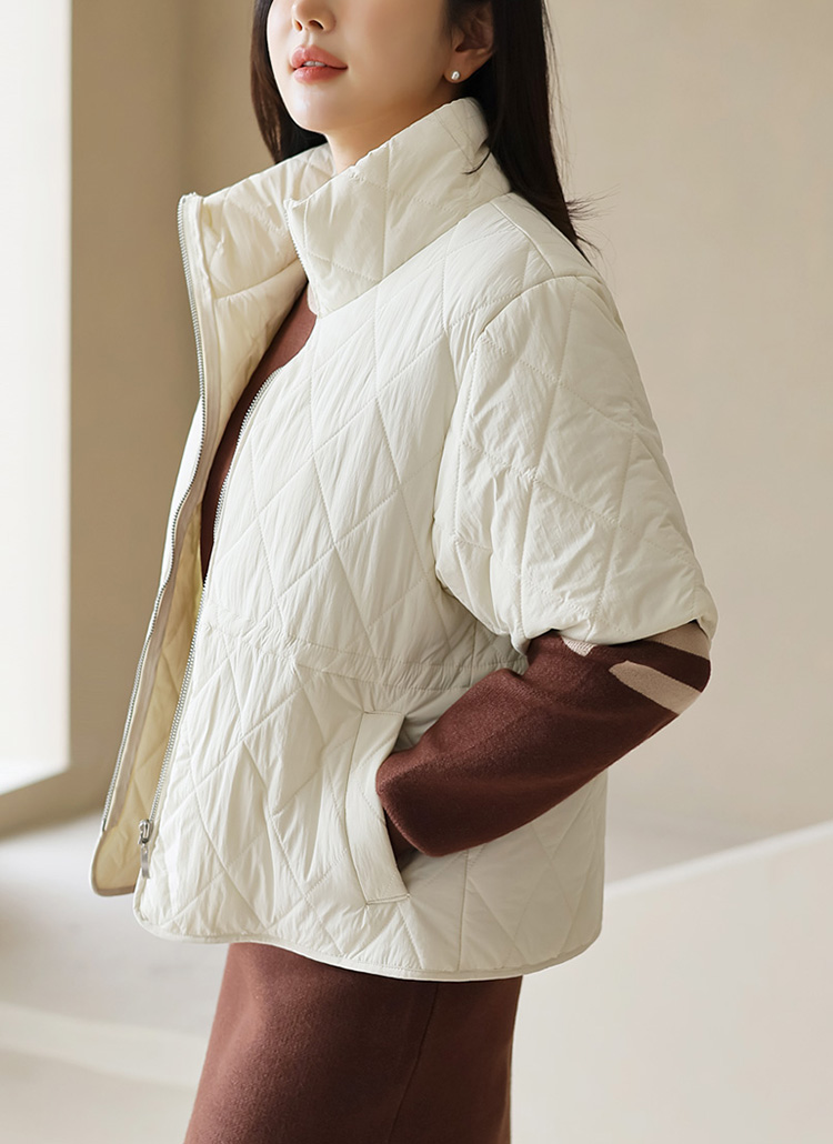 Half-Sleeve Quilted Zip-Up Jacket with Drawstring Waist