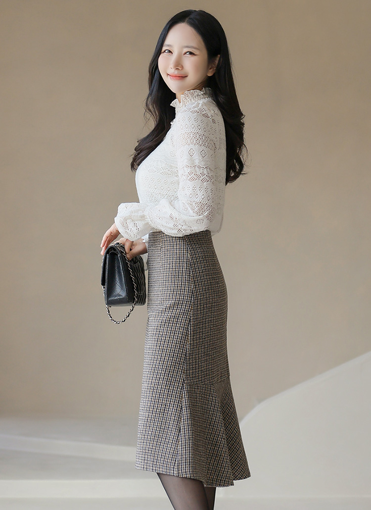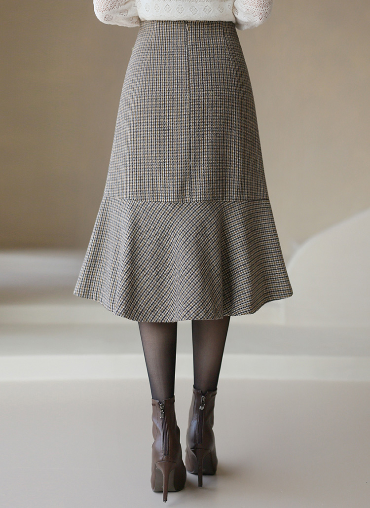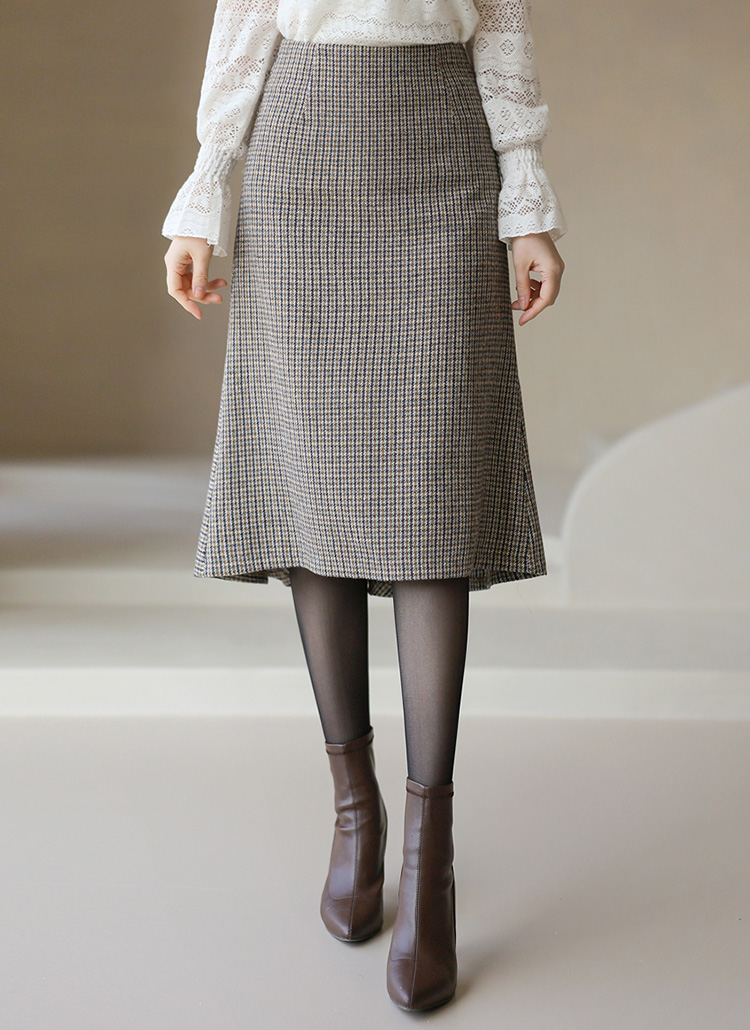 ([LouisAngel] Checkered A-Line Midi Skirt with Back Flare