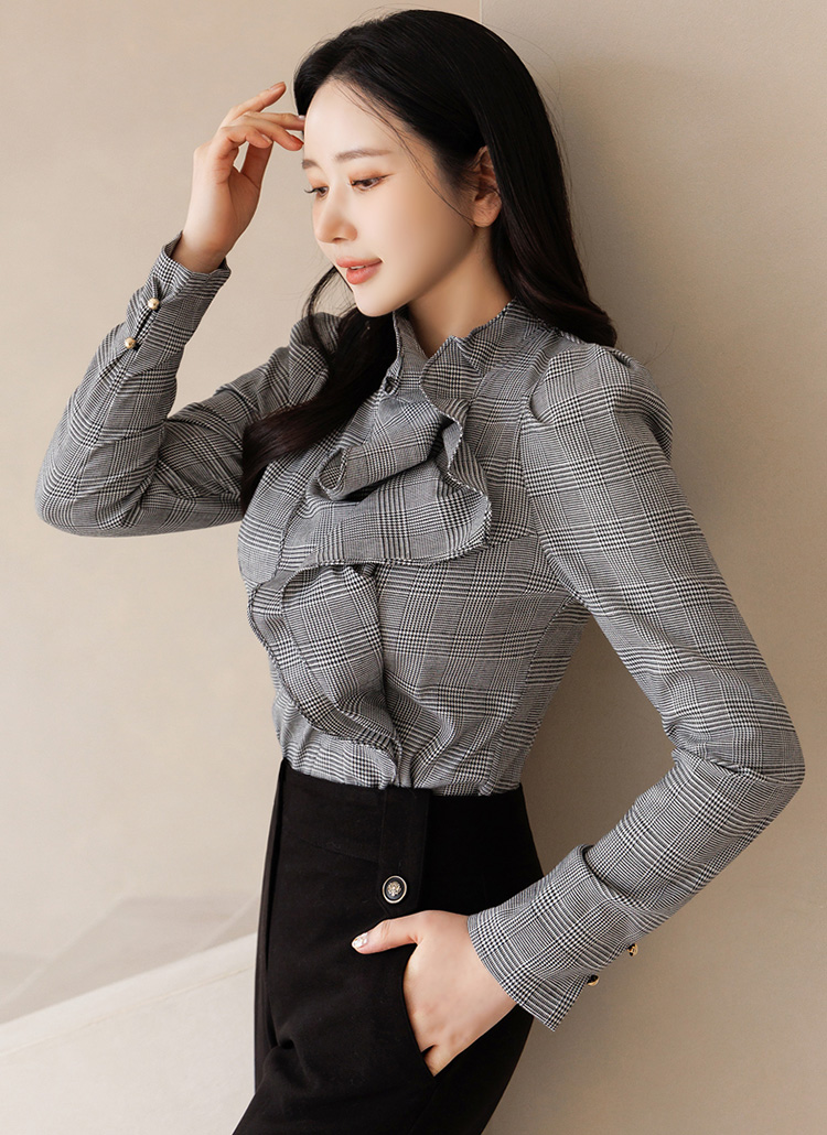 우아함과 세련미를 강조한 체크 블라우스에요 :)