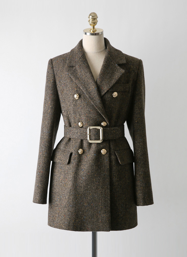 [루이스엔젤] 베네트 울 50% 블렌딩 벨트SET 모직 헤링본 더블 하프 코트는