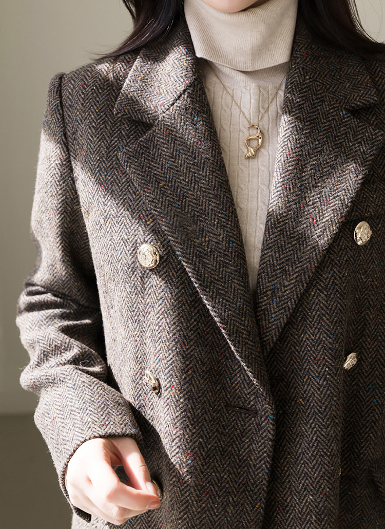 [LouisAngel] Wool50 Double Breasted Herringbone Coat w/ Belt