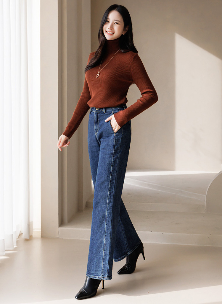 기모 안감으로 따뜻함을 더한 와이드 데님 팬츠에요 :)