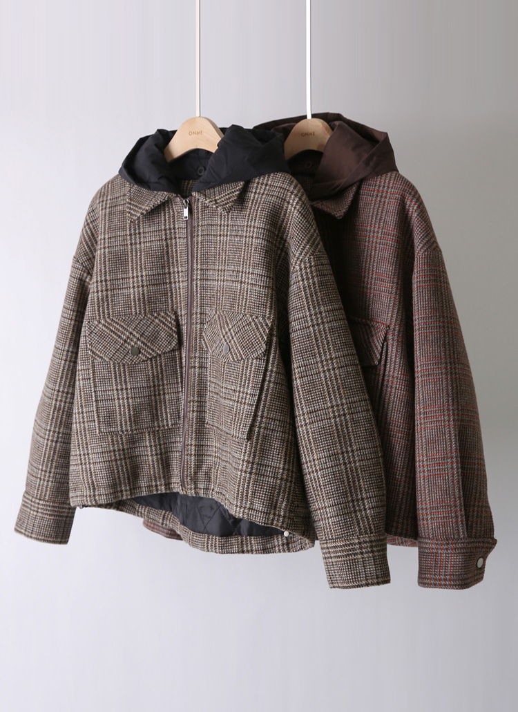 울 체크 누빔 안감의 카라 집업 점퍼에요 :)