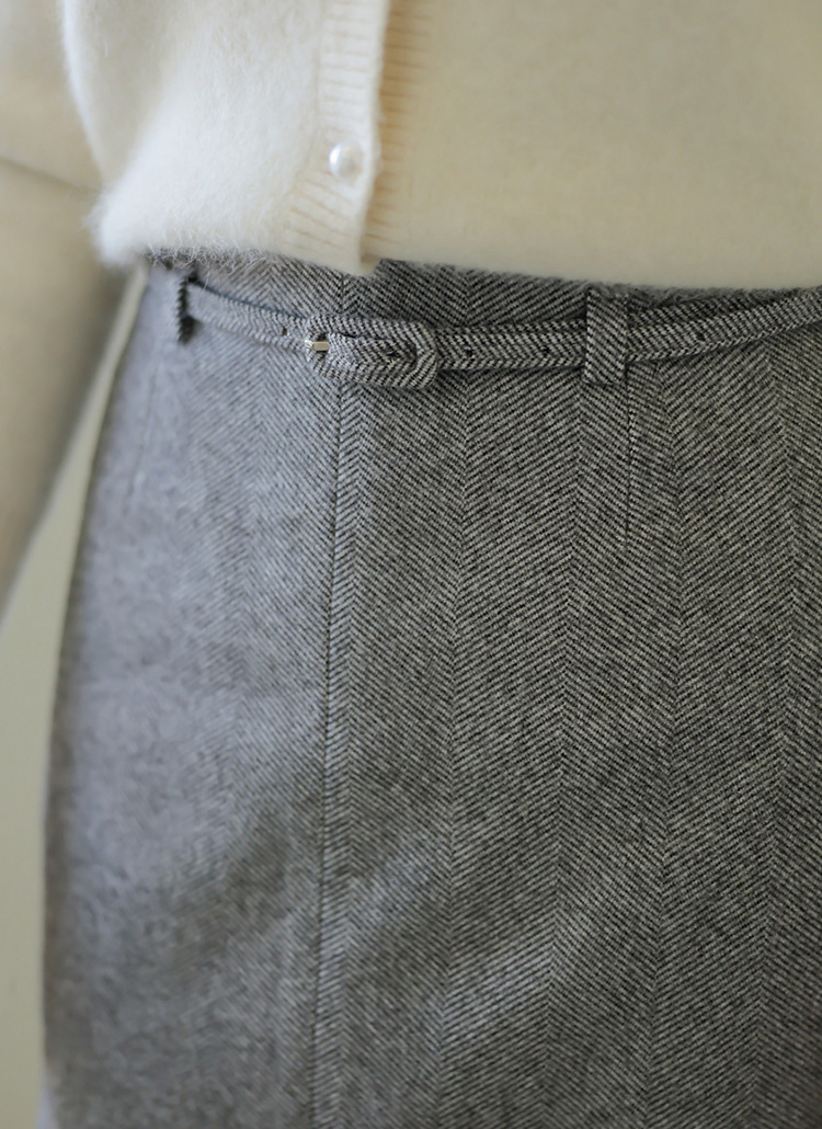 울10% 폴리에스터90% 모직 헤링본 원단의 펜슬 스커트!