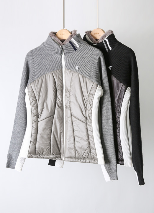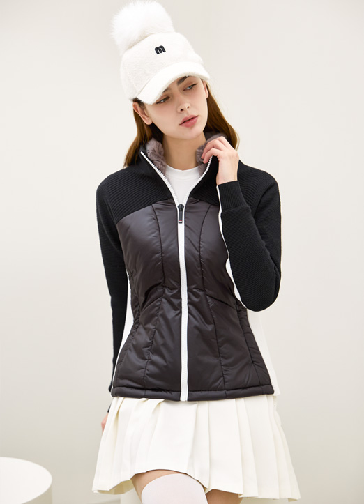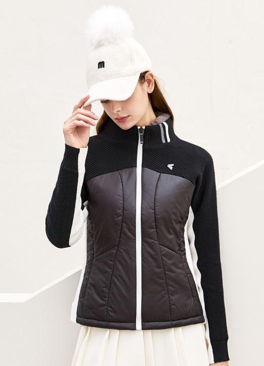 [QoG] Mixed Media Padded Slim Zip-Up Jacket