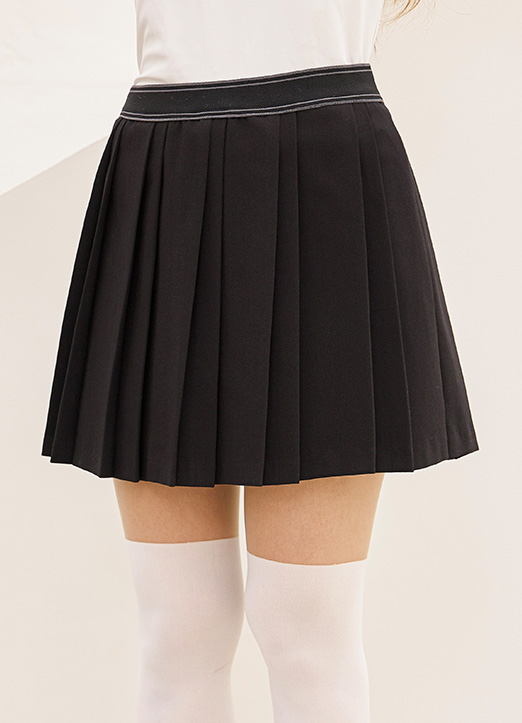 [QoG] Elastic Waistband Pleated Mini Skirt w/ Inner Shorts