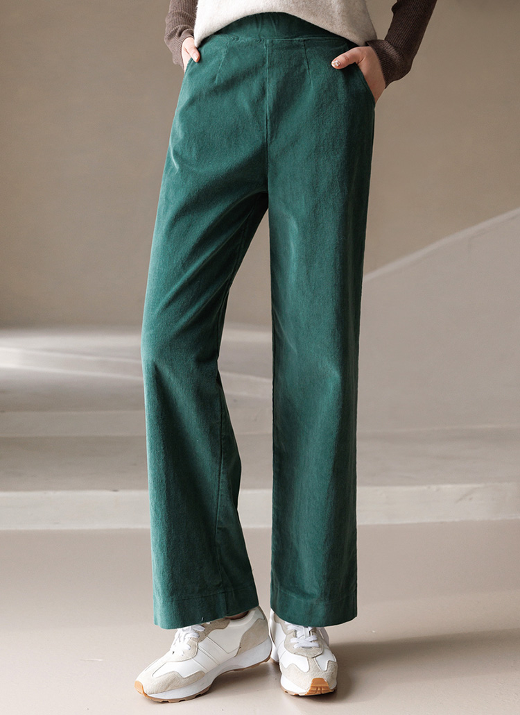 (7 Colors) Warm Brushed Corduroy Pull-On Wide-Leg Pants