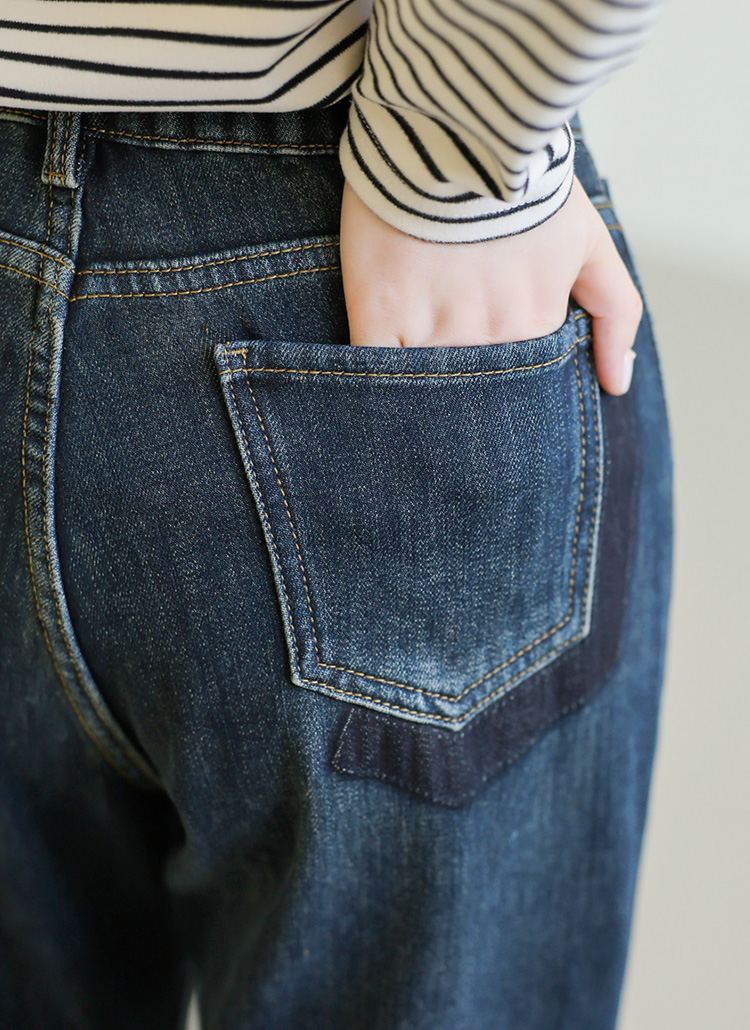 플로드 백 밴딩 히트 융 기모 안감 세미 배기 데님 팬츠는