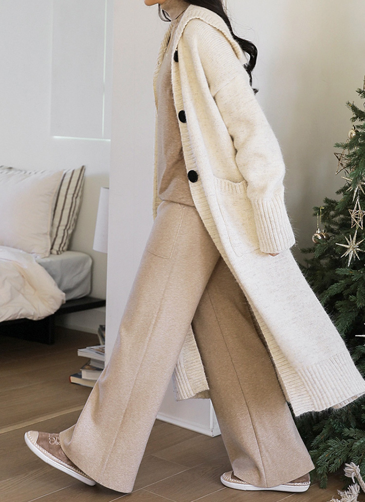 비스코스 혼방의 와이드 니트 밴딩 팬츠에요 :)