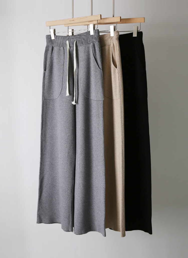[The Onme] Drawstring Waist Big Pocket Wide-Leg Knit Pants