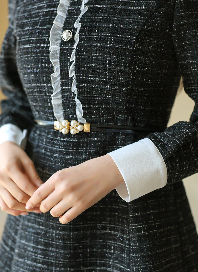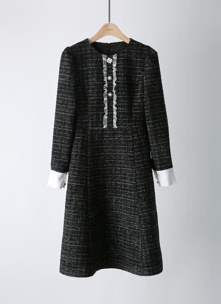 [LouisAngel] Lace Frill Detail Fit& Flare Tweed Dress