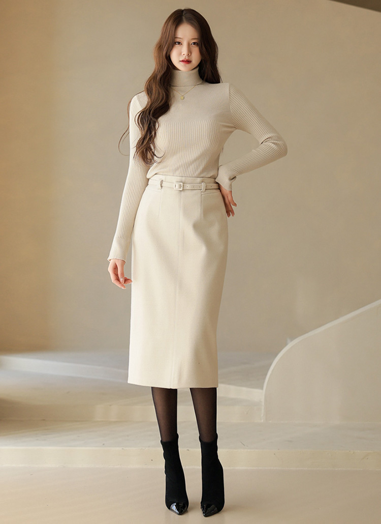 따뜻한 착용감을 선사하는 슬림 H라인 미디 펜슬 스커트에요 :)