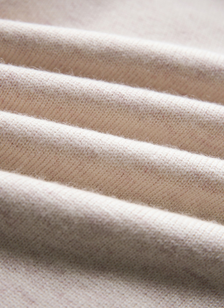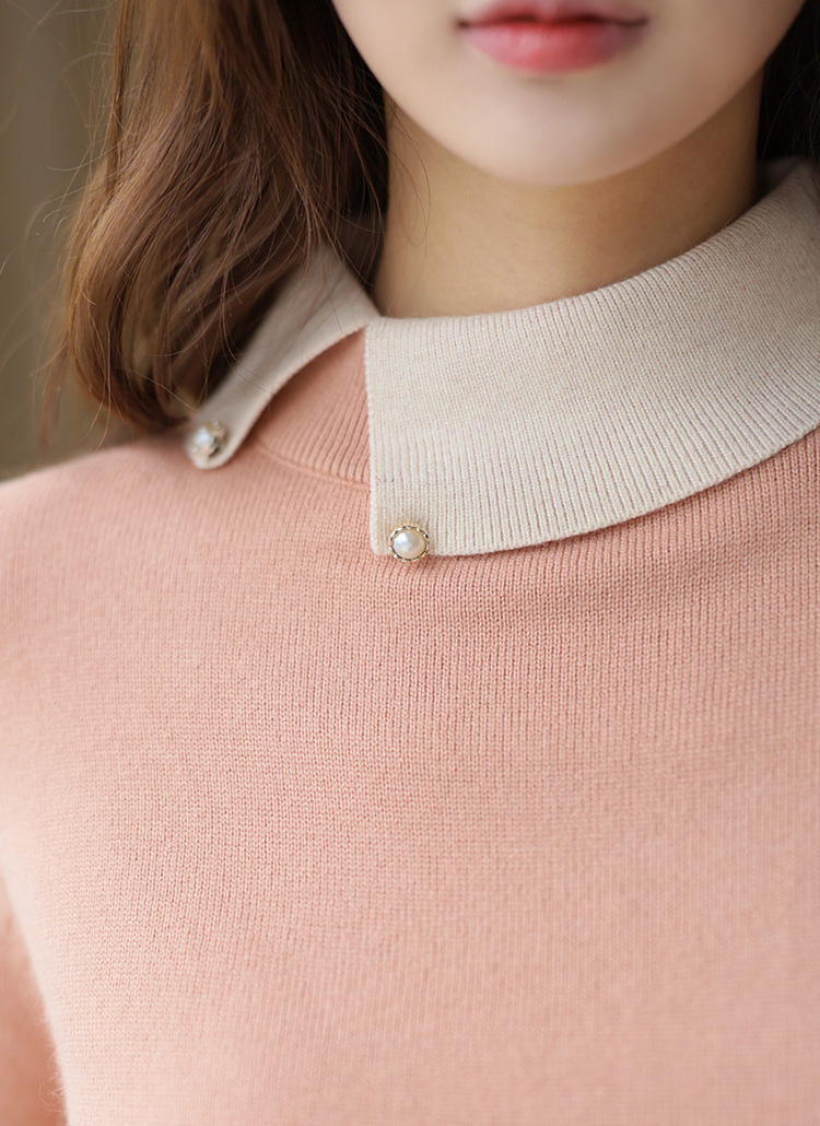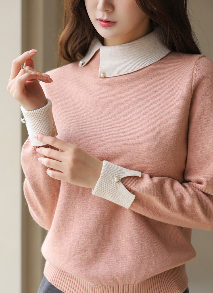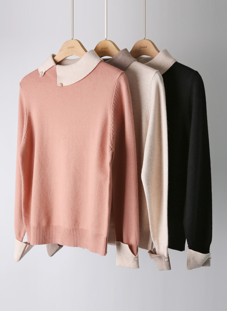 [Cozy wool-blend sweater featuring a stylish split collar and cuffs]