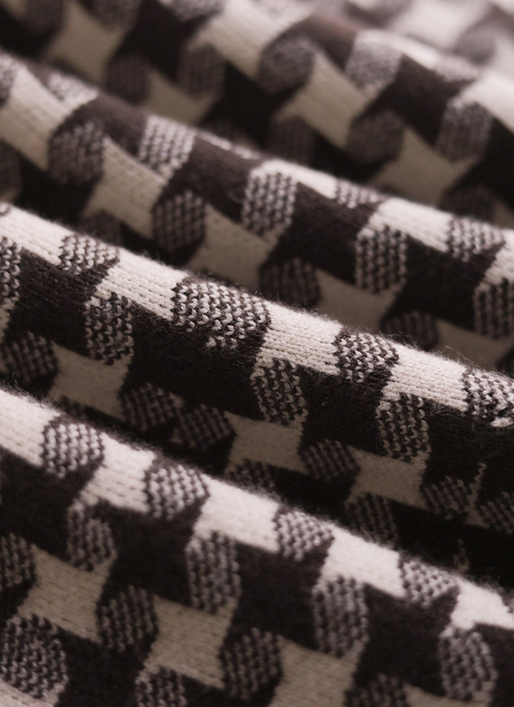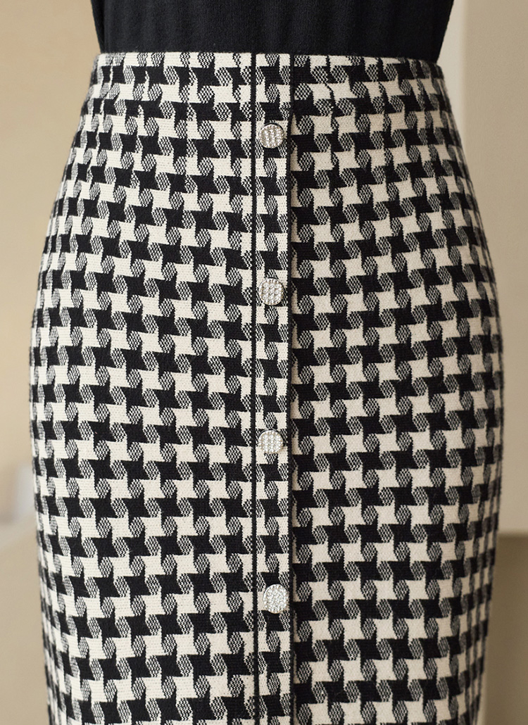 세련된 제비체크 패턴에 쥬얼리 버튼으로 포인트를 준