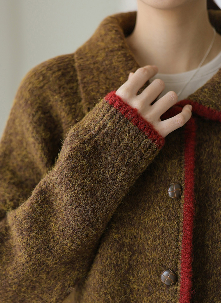 [The Onme] Retro Chic Contrast Trim Knit Cardigan