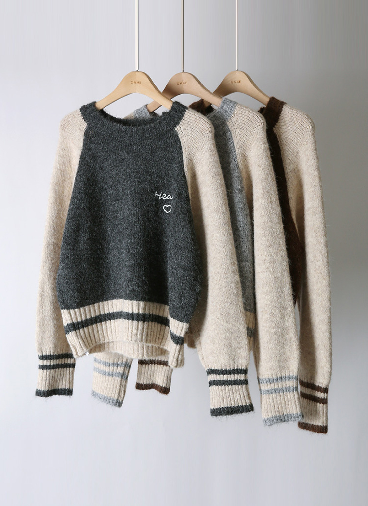 하트 자수로 사랑스러운 포인트를 준 라운드 니트에요 :)