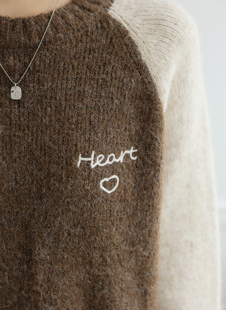 [The Onme]Heart Embroidery Raglan Knit Top