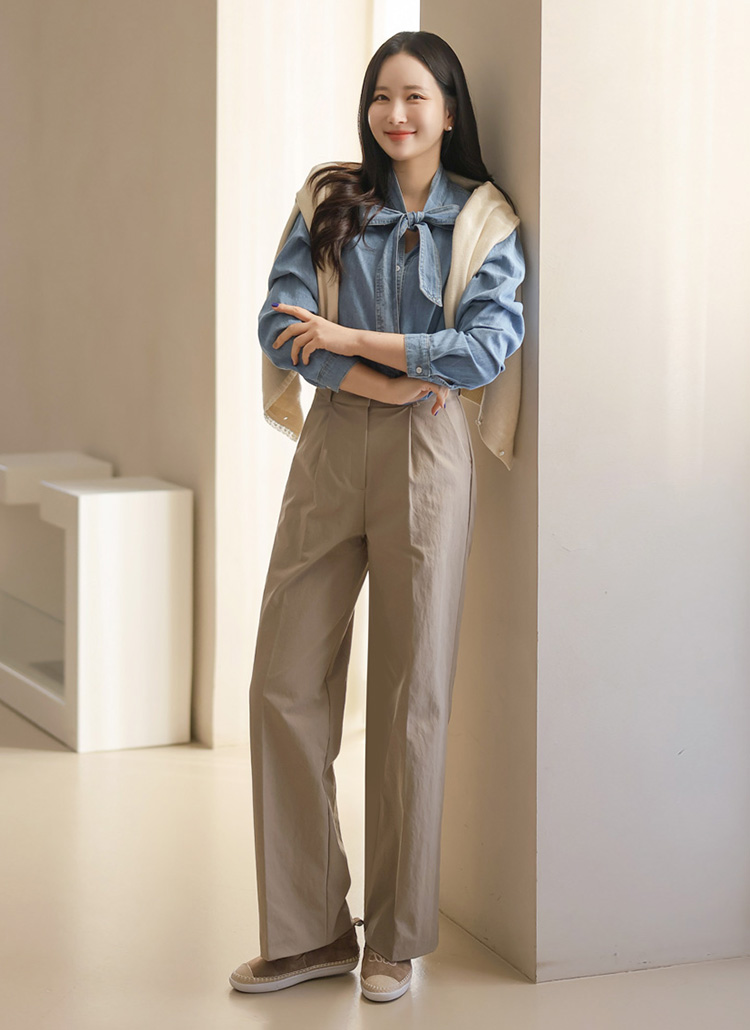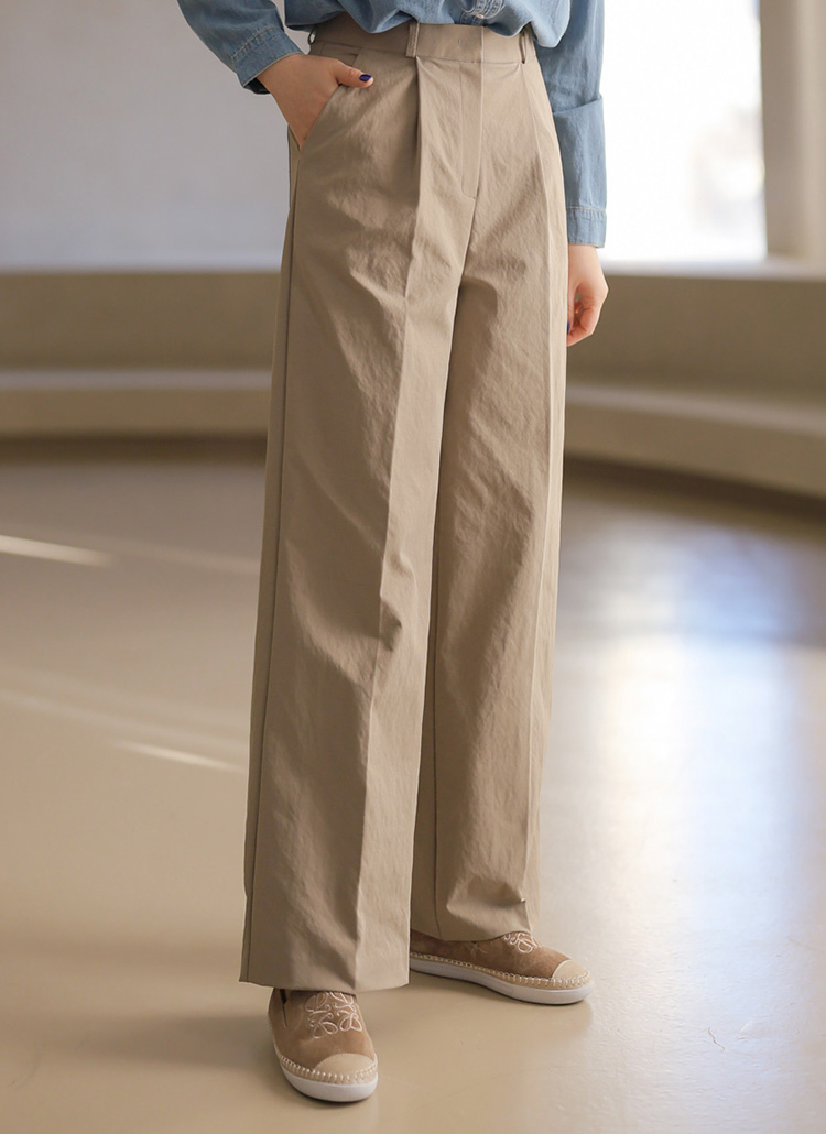 깔끔하게 떨어지는 일자 핏에 원턱 디테일로