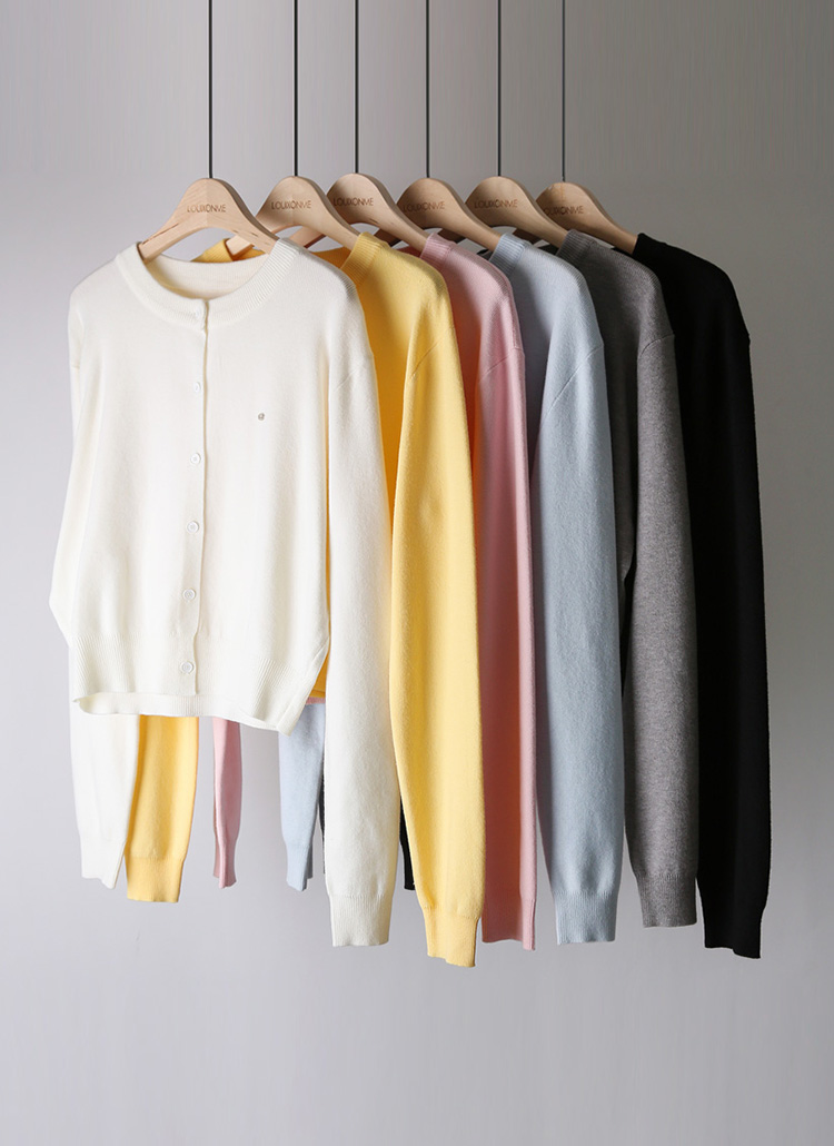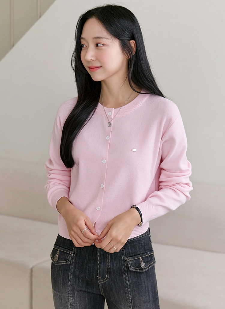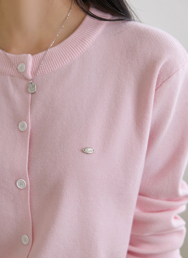 [The Onme] (6 Colors) Silver Pendant Round-Neck Knit Cardigan
