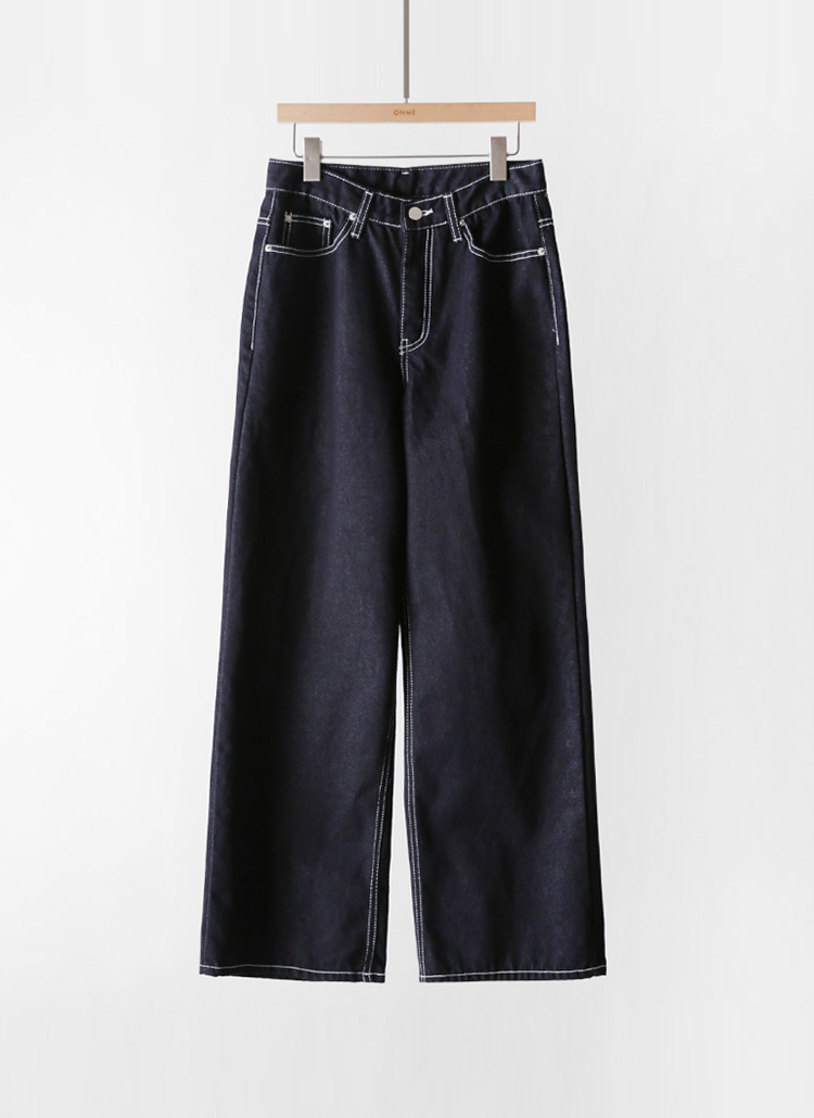 화이트 스티치 라인이 돋보이는 와이드 팬츠에요 :)