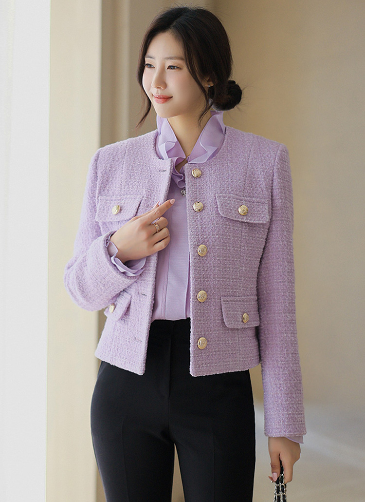 소맷단의 러플 배색이 손끝까지 우아한 자태를 연출해주어