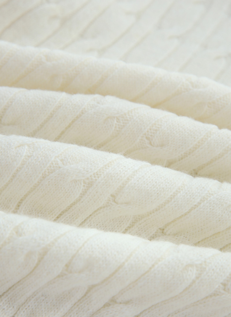[A soft, warm knit with a classic cable pattern and round neckline, available in 10 trendy colors for any style.]