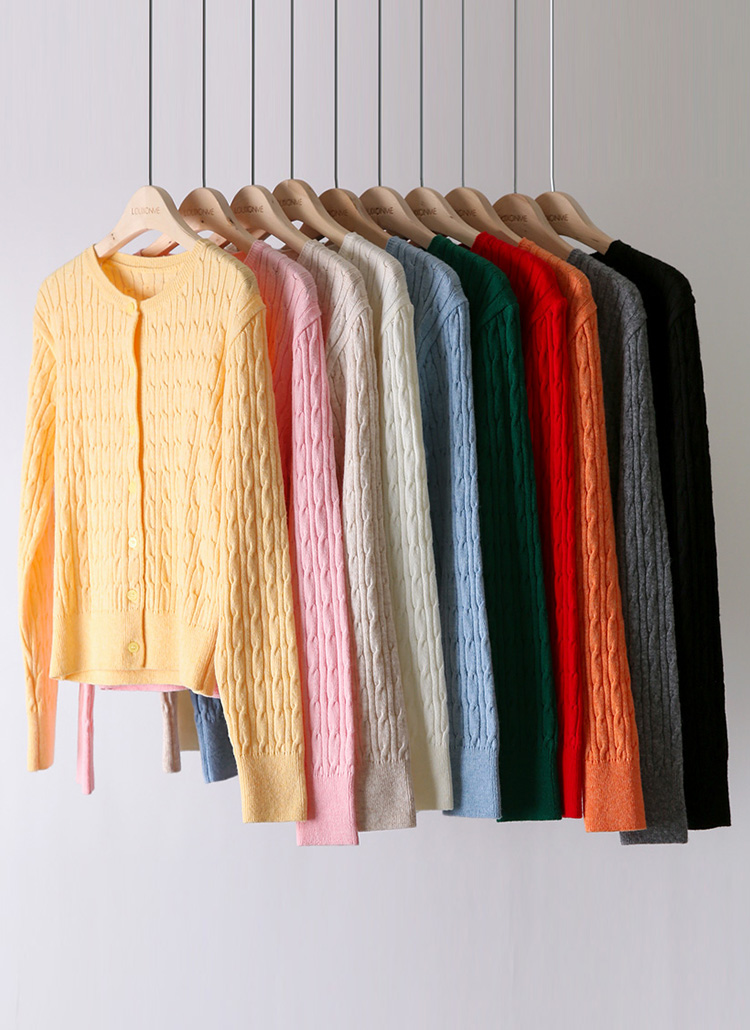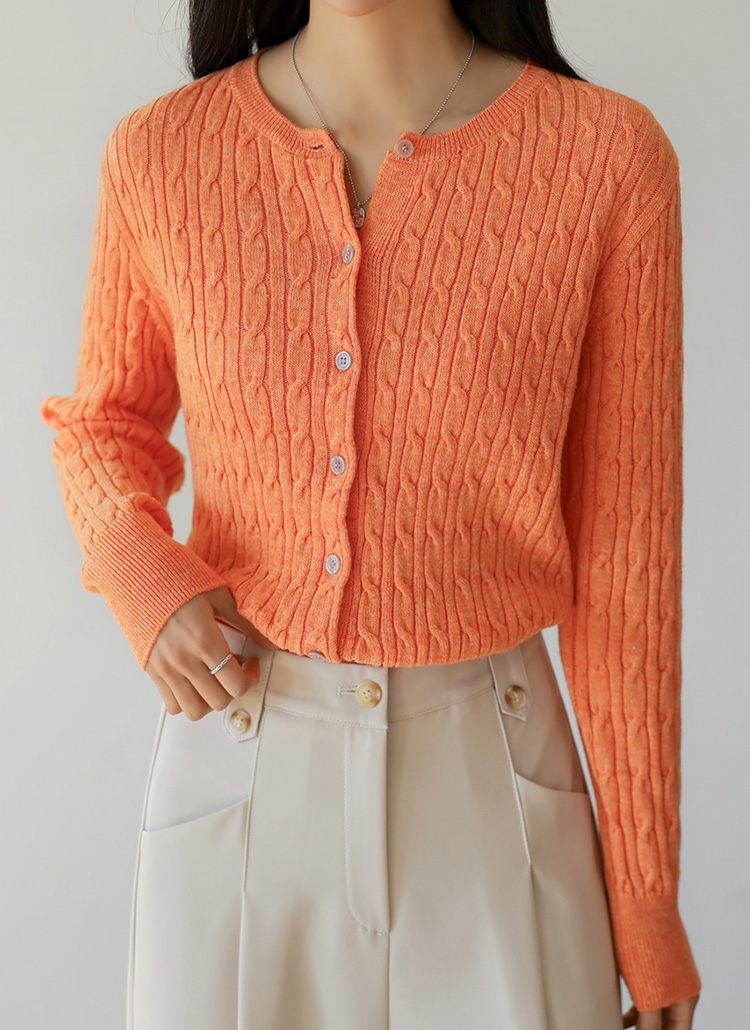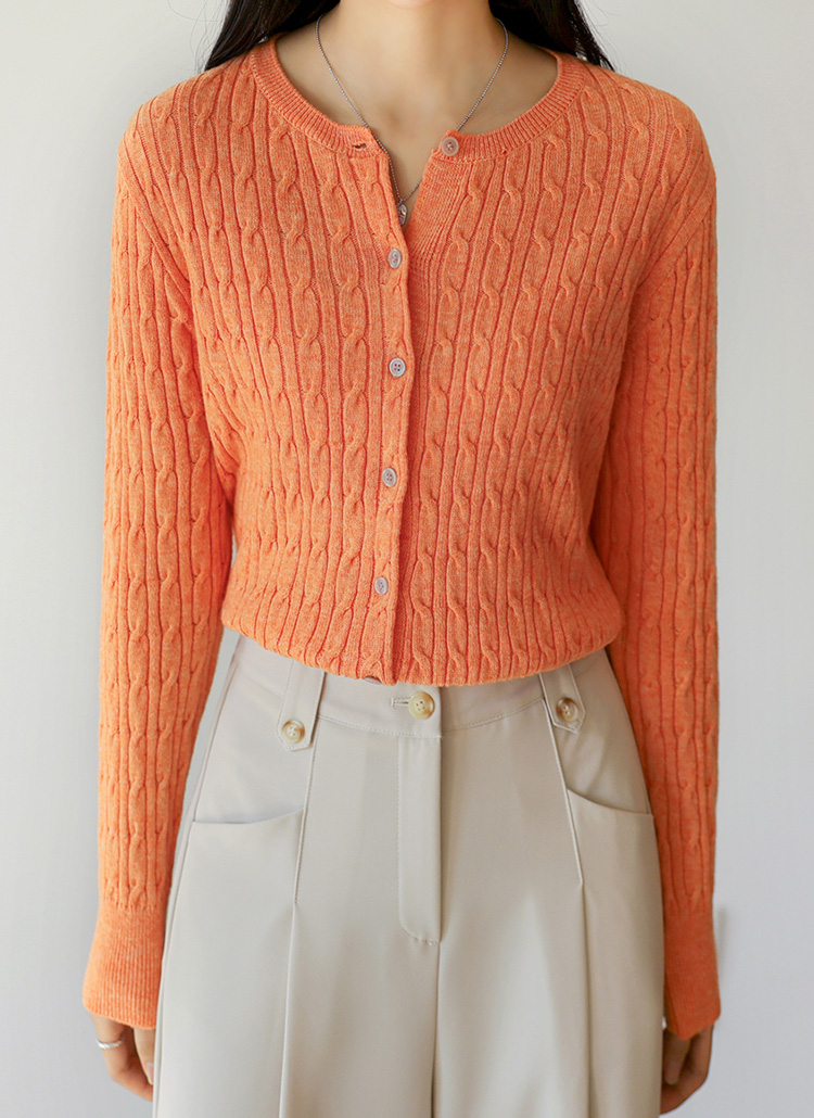 트렌디한 컬러 구성의 꽈배기 라운드 니트 가디건이에요 :)