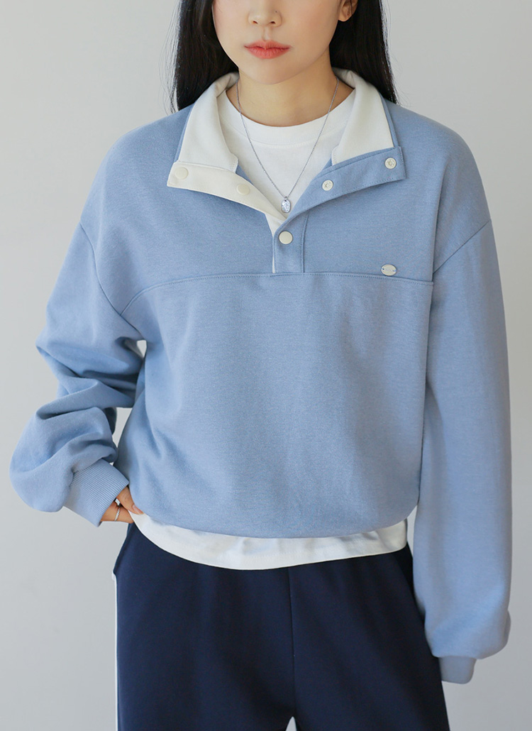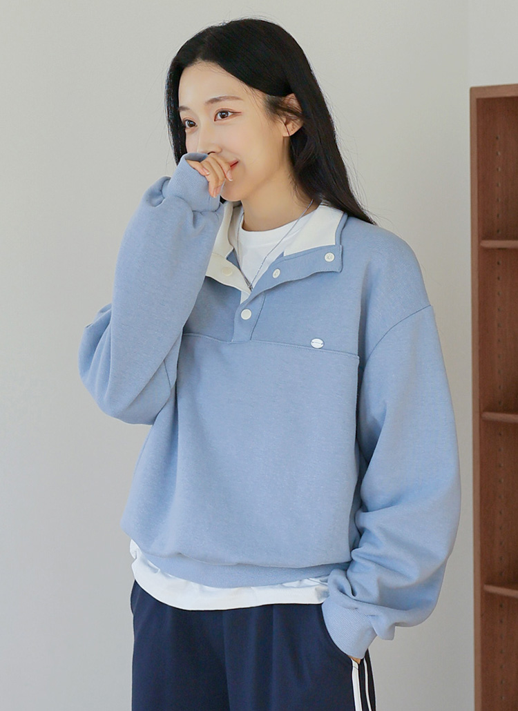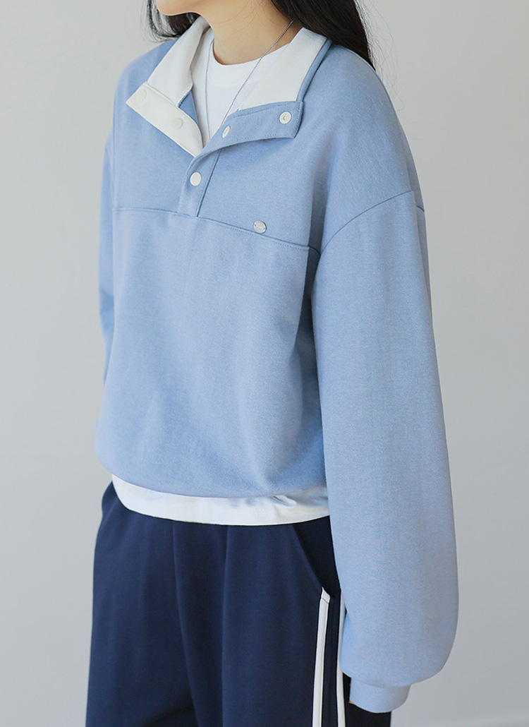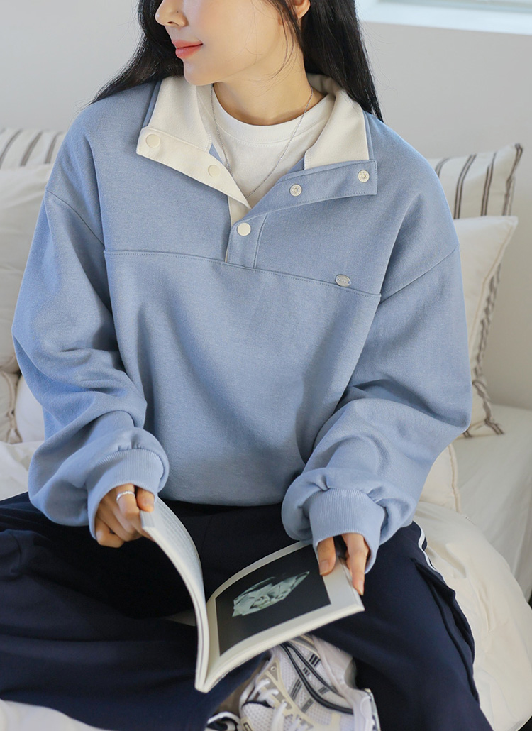 [Designed with a two-tone collar and relaxed silhouette, this sweatshirt brings effortless charm to everyday wear.]