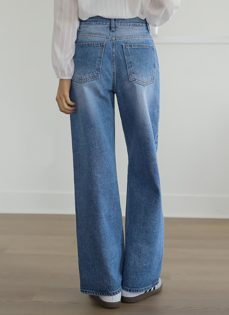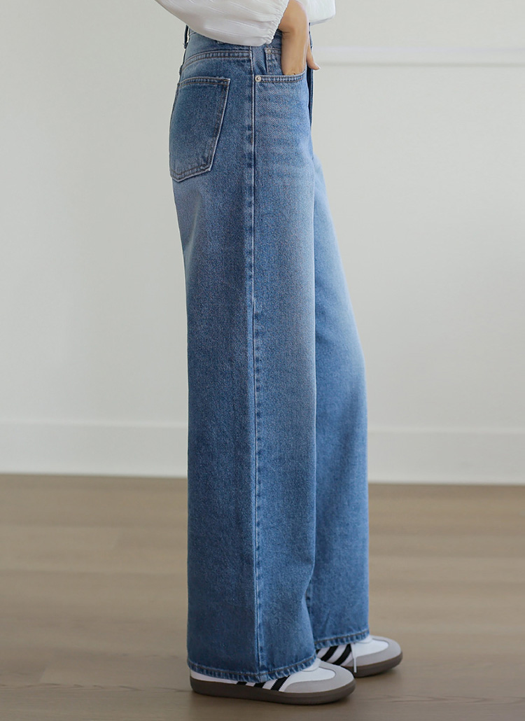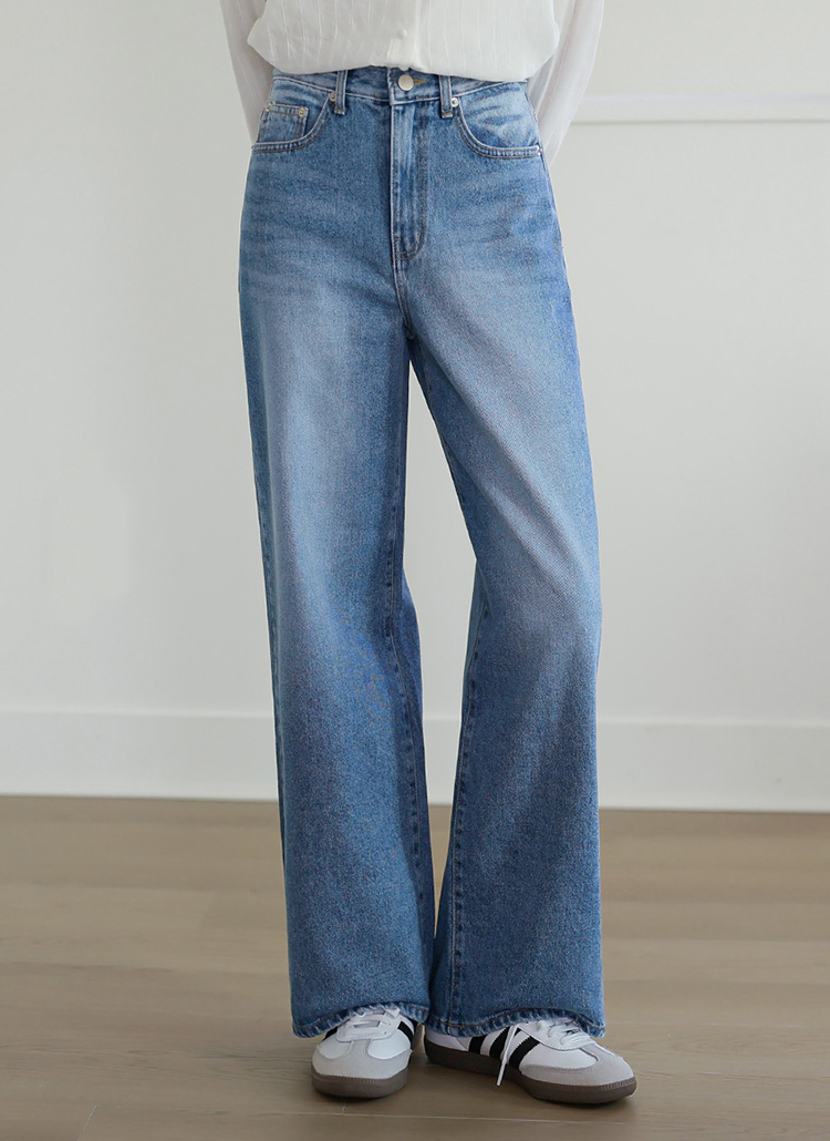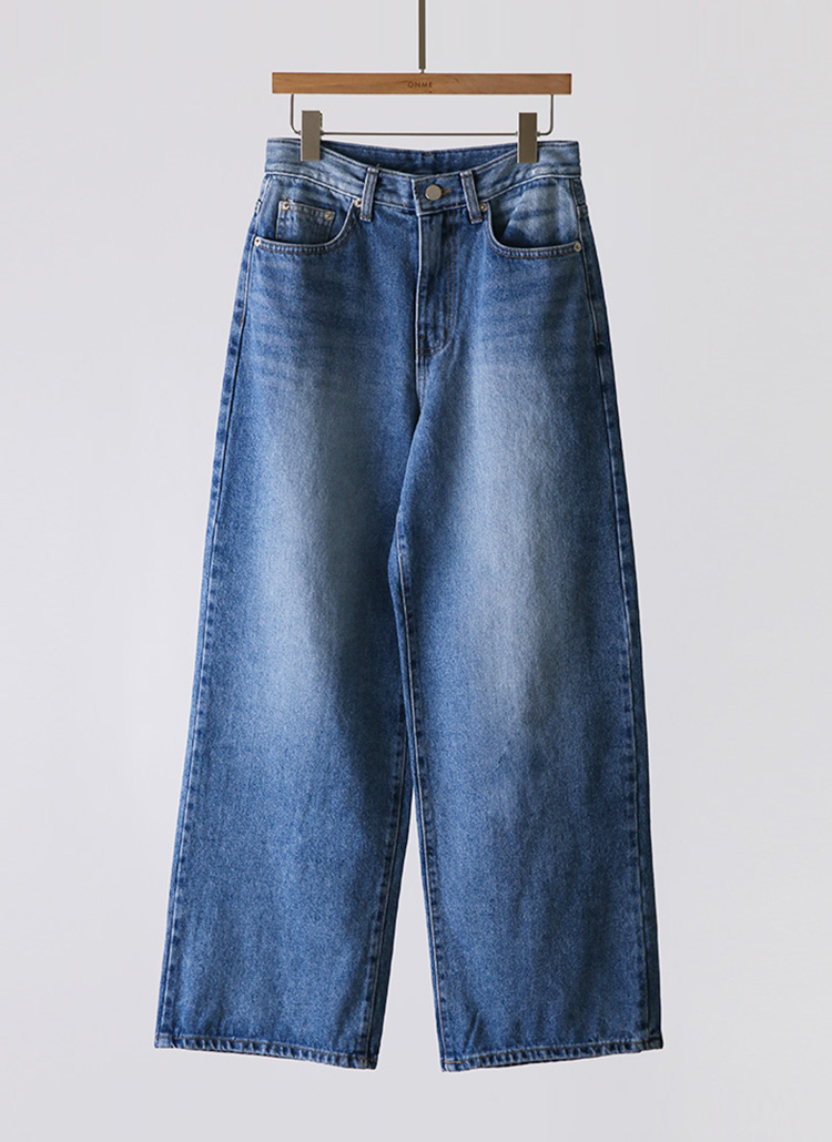 [The Onme] Mid-Blue Wide Straight Jeans