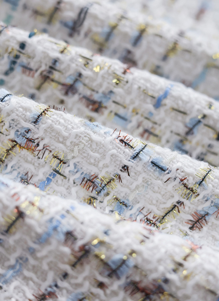 파스텔톤 컬러사와 골드 펄사가 믹스되어 제작된 트위드 소재로