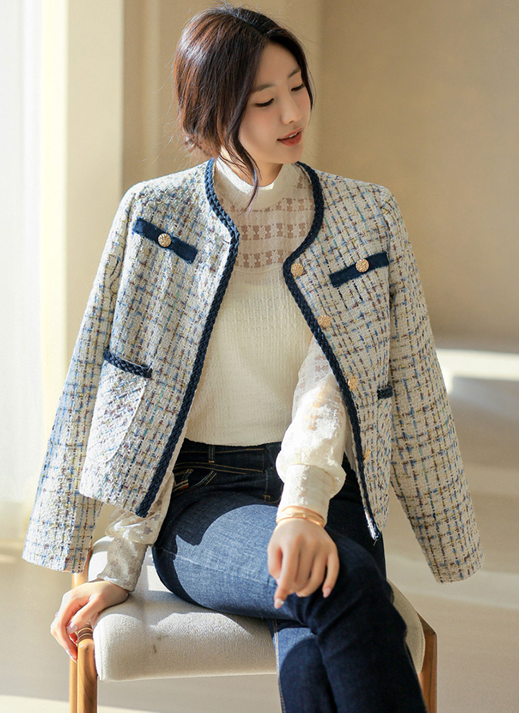 [Special Price] Braided Trim Pastel Tweed Jacket