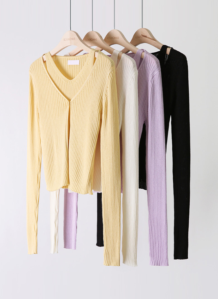 [The Onme] Feminine Layer Ribbed Knit Top