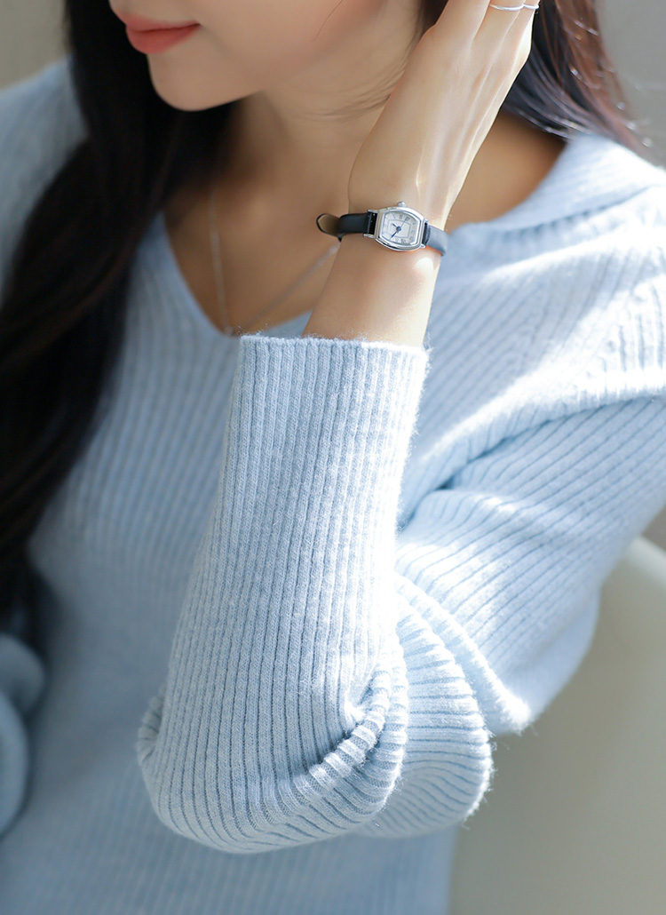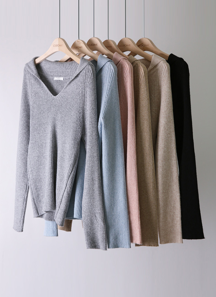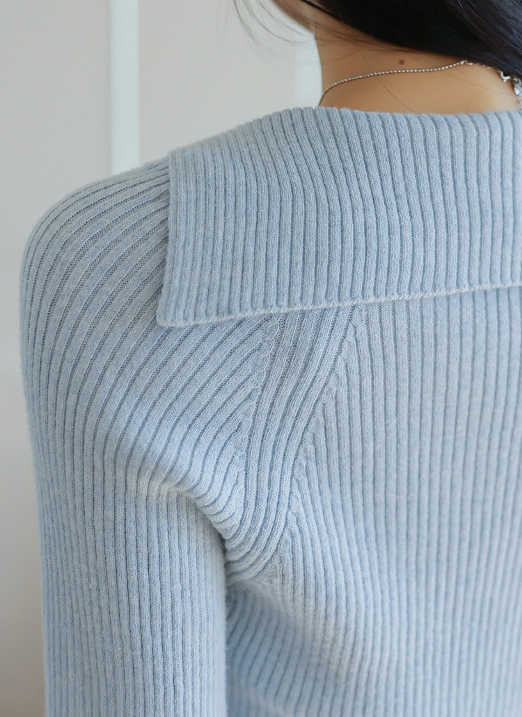 [A sleek ribbed knit with a sophisticated sailor collar and flattering V-neckline, crafted for a soft and cozy feel.]