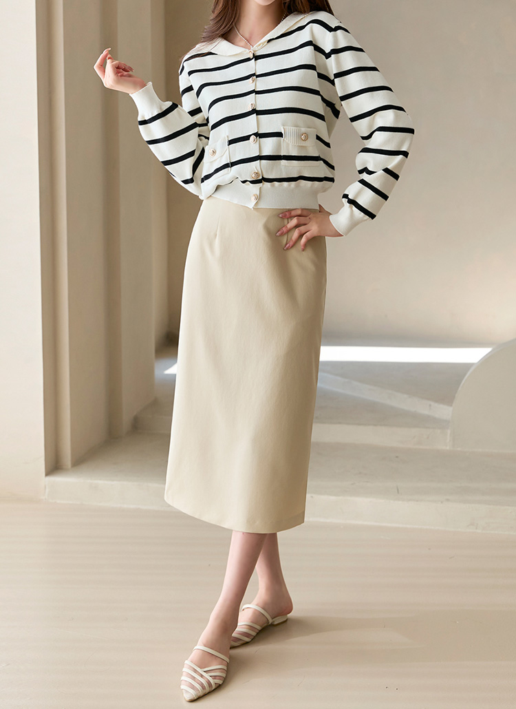 산뜻한 세일러 카라 디자인에 골드 버튼으로 포인트를 준 니트 가디건이에요 :)